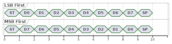 ST stands for start bit, D0 ~ D7 are data bits, SP stands for stop bit.