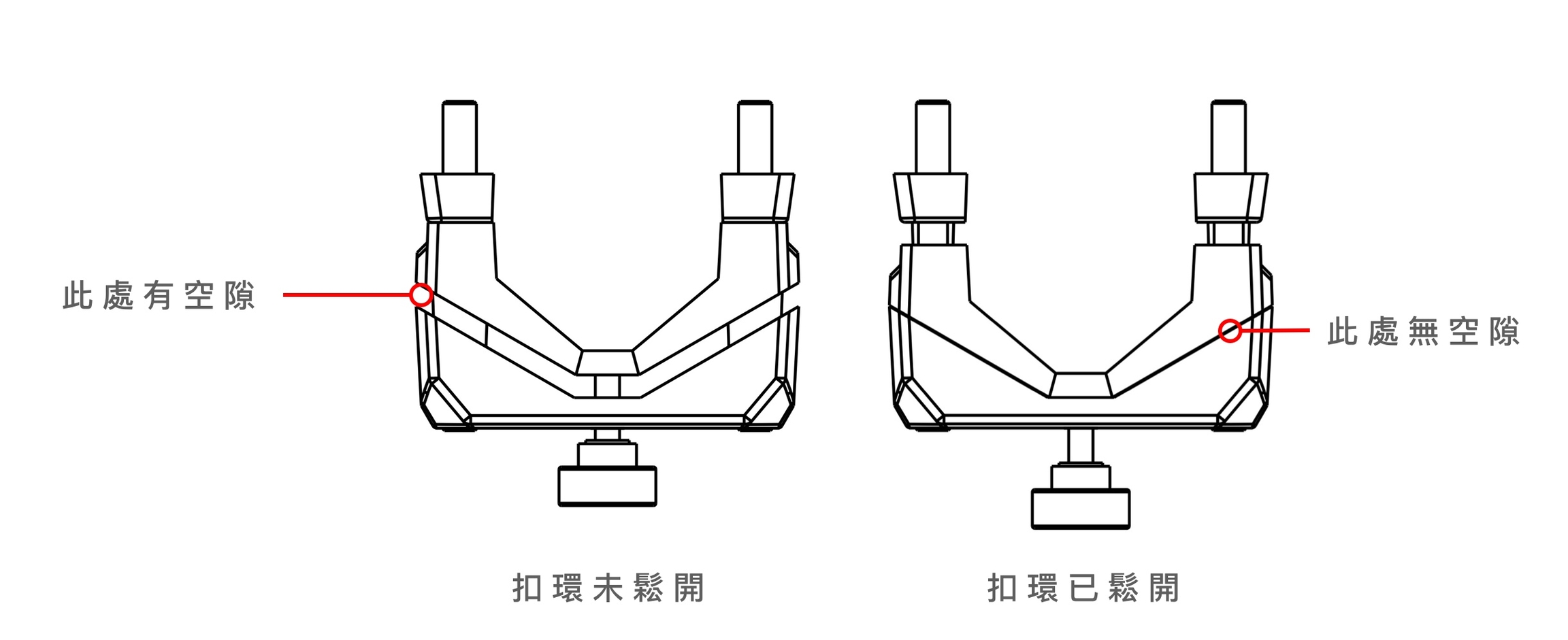 用手將扣具上的兩個旋鈕鎖緊,只要主機不會轉動及移動即可。