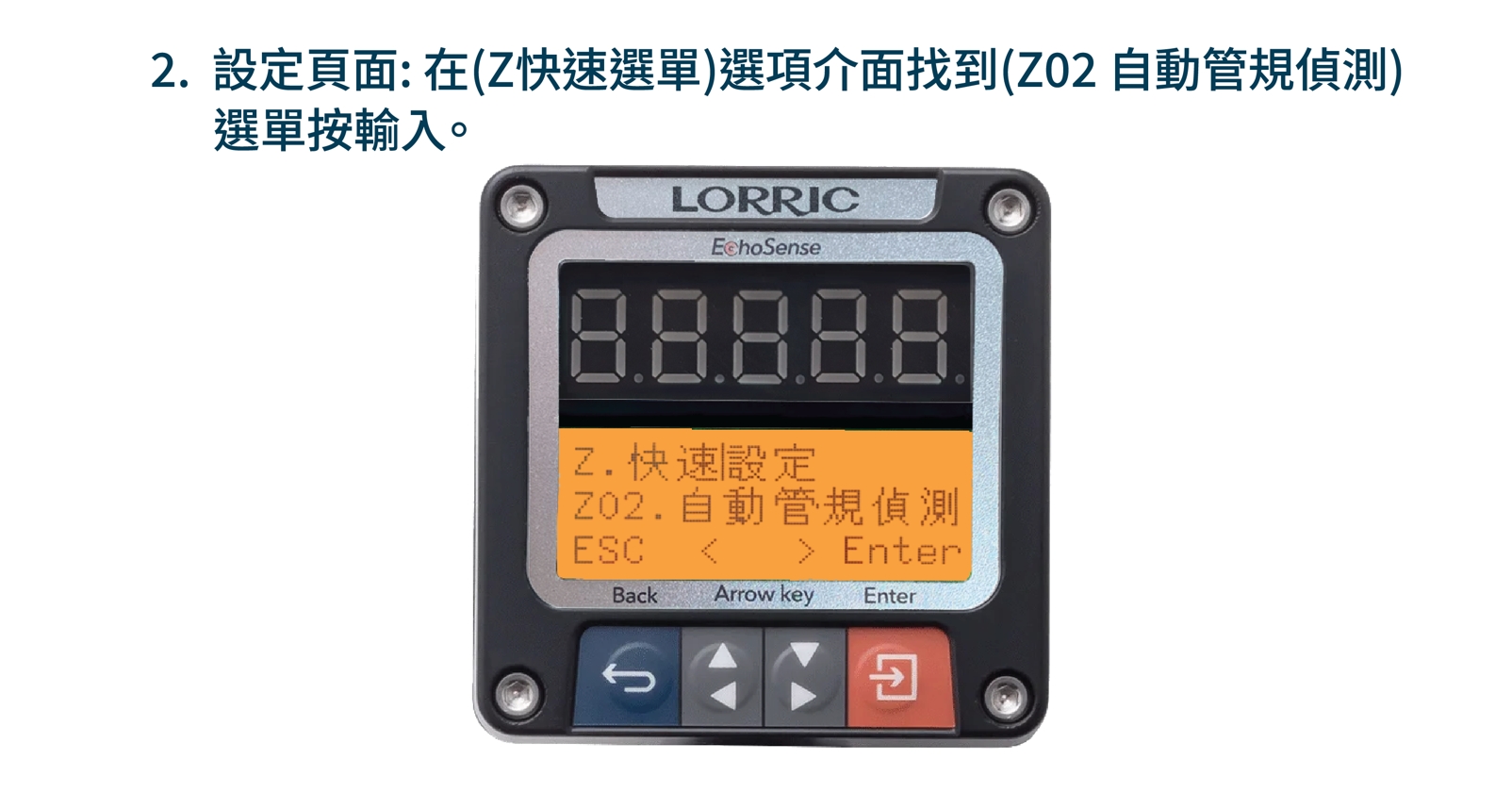 設定頁面: 在(Z快速選單)選項介面找到(Z02 自動管規偵測)選單按輸入。