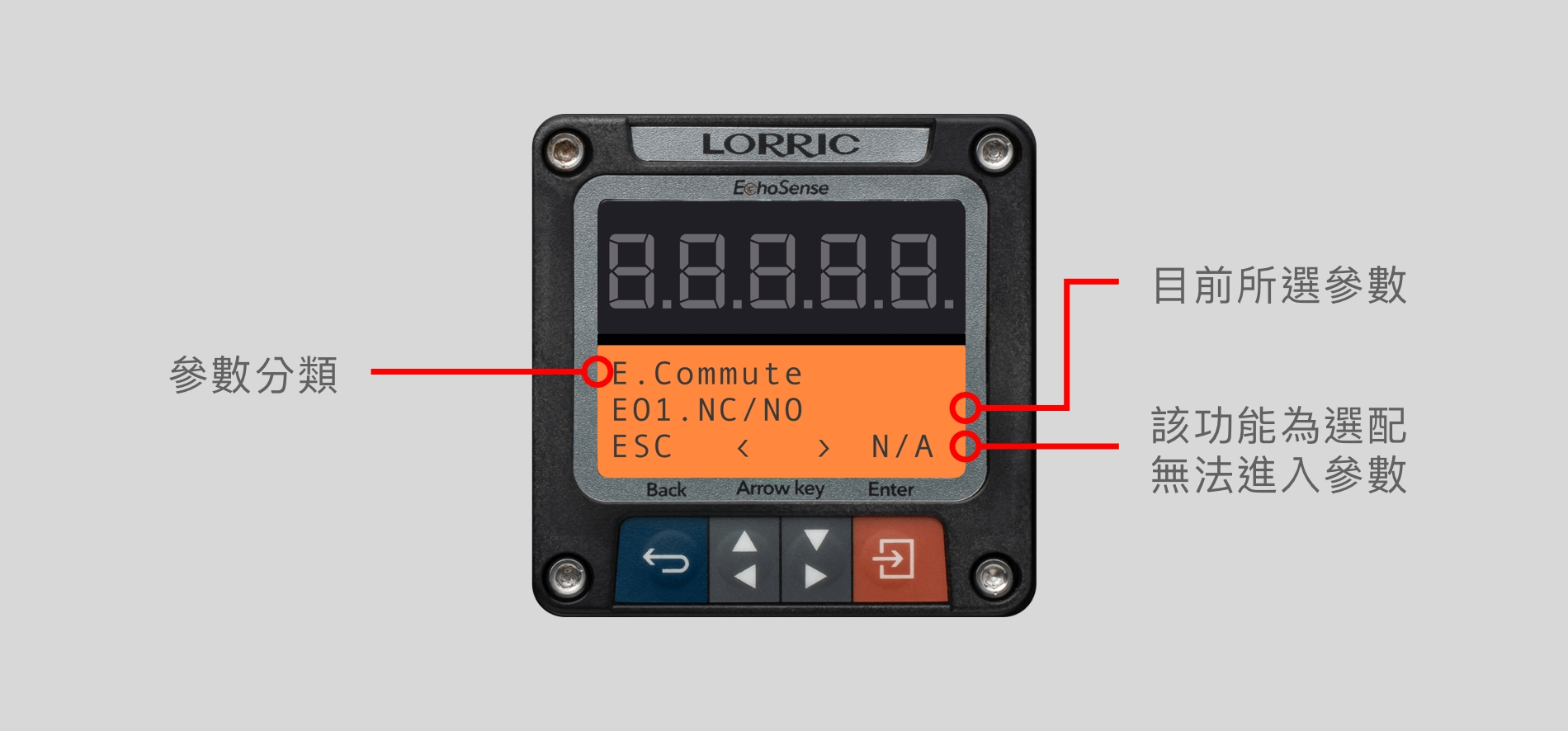 可以通過中間兩個按鍵切換要設定的參數分類,參數分類及參數定義請看設定參數頁面。
